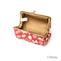This is an original Okazen bale-shaped pouch with Kyoto Nishijin-style weaving and woven with Mickey Mouse and Donald's iconic parts . The pouch can be used with the mouth wide open, making it easy to see and take out the contents.